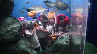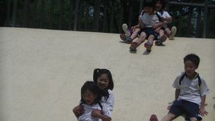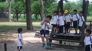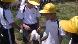 1年生は遠足で黒部牧場と魚津水族館へ行きました。牧場では、放されたヤギとたっぷり触れ合いました。水族館では、大きな水槽で泳ぐ魚を眺めたり、イシダイのショーを楽しんだりしました。弁当の後は、公園の遊具で汗まみれになって遊びました。友達と仲よく遊べてよかったですね。