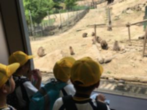 天候に恵まれ、気もちよくの遠足をスタートすることができました。多くの動物が子供たちを出迎えてくれました。子供たちは、動物の姿を見ると喜びの声を上げていました。子供たちのなかには、グループの友達がはぐれないように友達に声をかけている様子が見られました。グループの仲がより深まったように感じられました。
