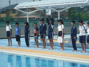 業間にプール開きをしました。安全祈願をした後、体育委員会から「はとどけい」の約束の確認がありました。暑い日となり、早くプールに入りたいと思った子供が多いことでしょう。安全に楽しく水泳学習をしたいです。