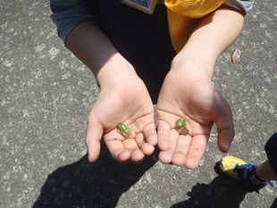 生活科の学習で、今日の5限に「佐味神社」と「沼保公園」に行ってきました。佐味神社では、草花やダンゴムシやカエルに触れ合い、大喜びの子供たちでした。草花束をつくったり、草相撲をしたり、カエルやダンゴムシを見つけたり、自然の中で楽しい時間を過ごしました。