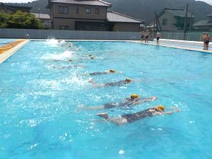 今日の体育で今年初めての水泳学習を行いました。少し肌寒かったのですが、子供たちは元気いっぱい泳いでいました。これから天候の良い日は、どんどんプールに入って上達するように練習していきたいと思います。