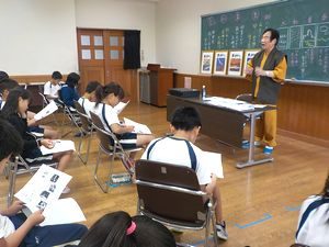 講師の方をお招きして、俳句出前講座が行われました。事前に作った子供たちの俳句に講評をいただいたり、良い俳句を選んで、そのよさを説明していただいたりしました。季節を感じる日本独自の文化に触れて楽しいひとときを過ごしました。