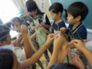 今日は講師の方をお招きして、俳句の出前講座をしていただきました。子供たちは、自由な発想でたくさんの俳句を作ることを楽しみました。最後は笹の葉に俳句をつけて各教室に飾りました。