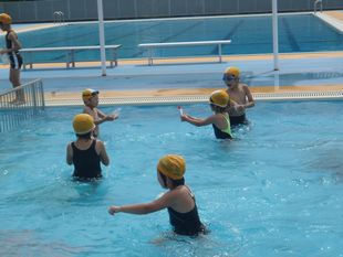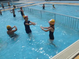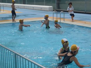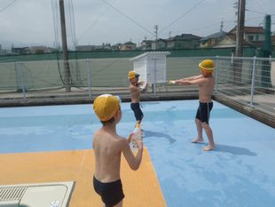 今日は、プールで生活科の学習で、水遊びをしました。子供たちが家からもってきた空き容器やペットボトルで、水が出るように工夫をして「水てっぽう」をつくりました。プールで行ったので、思い切り、水のかけあいっこや水とばしを楽しむことができました。