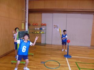 体育の時間に頑張っていた、満塁Tボール。今日が、最後の試合でした。今まではクラスごとに練習をしていましたが、今日は1組と2組の試合でした。初めはバットを持ったこともない子供もたくさんいましたが、みんな上手に打つことができるようになり、成長が見られる試合でした。応援の声も大きく、みんなで盛り上がることができました。