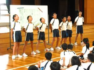 運動会に向けて、各色団の結団式がありました。どの色も5,6年の応援リーダーを中心として気持ちを一つにがんばろうと練習に取り組んでいました。