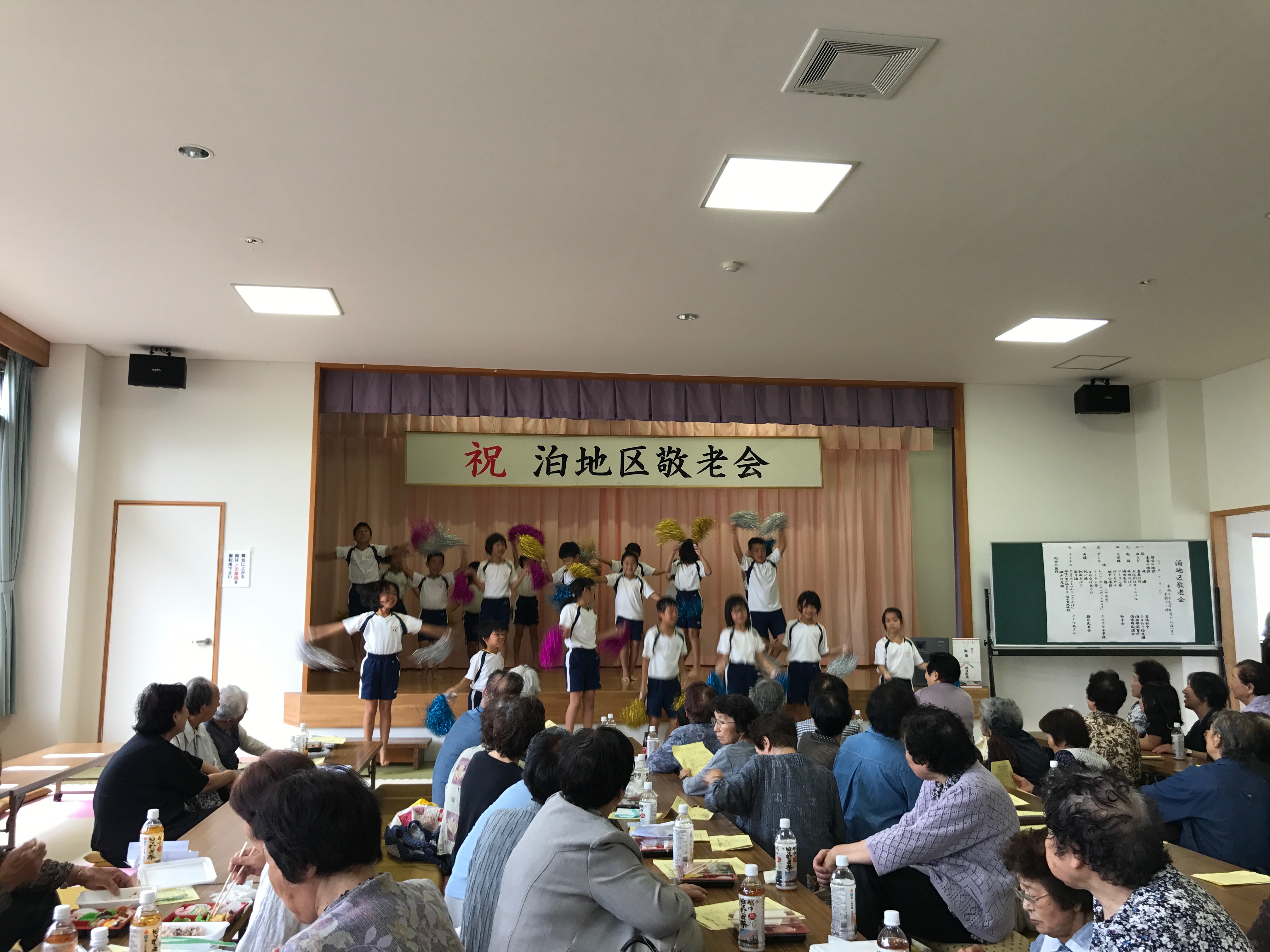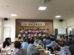 18日、2年生と4年生の希望者を募って、泊地区の敬老会に参加しました。運動会で披露したダンスと踊りを披露し、たくさんの喝采をいただきました。また、敬老会の運営にたくさんの保護者や地域の方がかかわっておられ、人生の先輩方への敬意に満ちた地域の結びつきの強さを感じました。送迎いただいた保護者の皆さん、ありがとうございました。