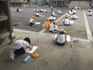 今日の5,6限に常光寺で写生会を行いました。子供たちは2時間しっかり集中して描くことができました。月曜日にも今回の続きを描きます。できあがりが楽しみです。