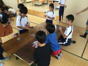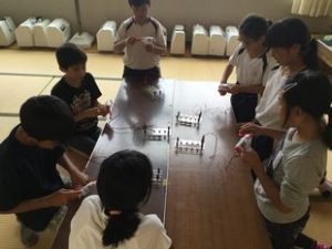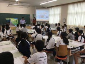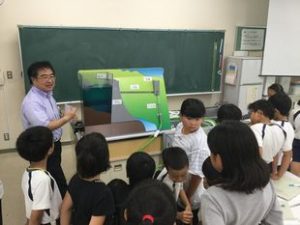 今日は関西電力の職員さんをお迎えし、エネルギー教室が行われました。私たちが暮らしの中で使用している電気はどうやって作られているのかについて教えていただきました。また、地球温暖化を防ぐために、省エネに心がけることの大切さを考えることもできました。さらに、LED、白熱電球などの発電体験や水力発電の模型で電気が起こる仕組みについて学びました。