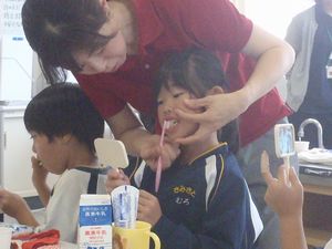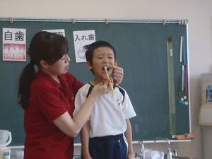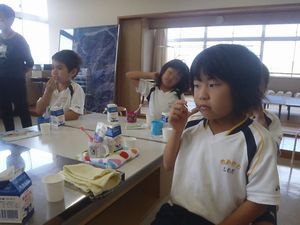 今日の2限に、1年生のむし歯予防教室がありました。むし歯をどうしたら予防できるか、歯の磨き方はどのようにするとよいかを教えていただきました。子供たちは、自分の歯を磨きながら、「歯ブラシを使ってどのよに歯を磨くとよいか」を体験しました。今日教わったことを、今後も続けていきましょう。