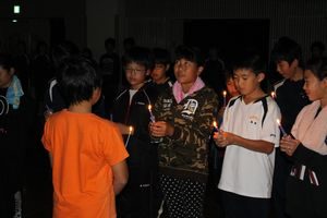 来拝山登山、野外炊飯、焼き板作り、キャンドルサービス、そして3日間の生活全般、グループの友達と協力し合い楽しく充実した活動になりました。みんなよく頑張っていたと思います。どの子もよい笑顔でした!これからの生活にこの力が生きることを期待しています。