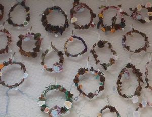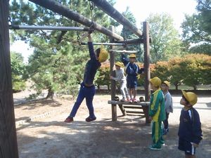10月18日(水)生活科の学習で、入善の運動公園へ行ってきました。秋の葉やドングリ、マツボックリなどを拾ってきました。また運動公園の遊具でもたっぷり遊んできました。学校に帰って来てからさっそく、アサガオのツルに拾ってきた秋の葉や実で飾り付けをして、すてきなリースが仕上がりました。一人ひとりの感性が表われてかわいいリースになりました。