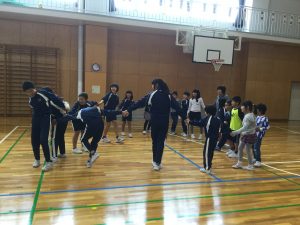 縦割り班ごとに活動しました。「大縄跳び」や「だるまさんがころんだ」などを行い、下学年と交流することができました。最高学年として、自覚をもって活動に取り組む子供が、以前よりも増えたように感じられます。様々な行事を経験することで、たくましく成長していってほしいです。