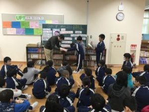 今年度のまとめとして最後に合同で外国語活動を行いました。「上手に買い物をしよう」を課題に店側と客に分かれ、品物のカードとおもちゃのお金を使って英語で買い物のやりとりを行いました。最後にはお世話になったアダム先生、浅水先生へ手紙を渡し、楽しく終えることができました。