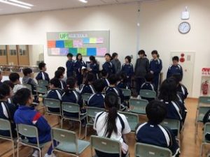 今日は集会係企画の最後の集会でした。震源地やフルーツバスケット、感想タイムなどを通して、子供たちなりに各担任に感謝の気持ちを伝えようとする姿に感心しました。
