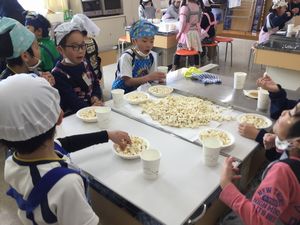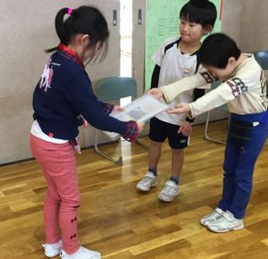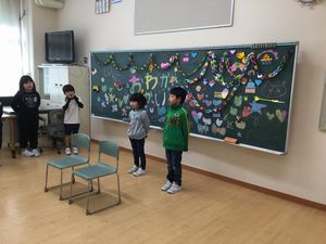 3月20日は、1年生のお別れ会でした。お別れ会は、みんな1年生を修了して2年生に進級するために、転校していく友達と楽しい思い出をつくってお別れをするために行いました。お別れ会では、得意なことを発表したり、みんなで協力をしてポップコーンづくりをしたり、「だるまさんが転んだ」「フルーツバスケット」で遊んだりしました。一人一人がそれぞれの役割を担当して進んで準備をし、生き生きと活動していた子供たちの姿から、1年生の1年間の成長を感じました。楽しい思い出がたくさんできましたね。