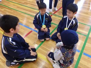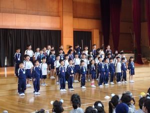 今日の集会では、各学年の出し物や全校でのゲームを行い、全校の中心として、集会を進めることができました。1年生も、お返しとして、元気いっぱい「さんぽ」を歌うことができました。