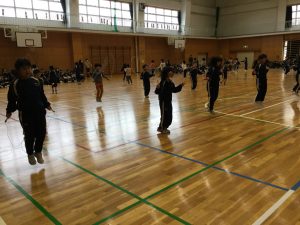 3年生や6年生の発表では、「すごーい!」「あのわざどうなっとるん?」と興奮しながら、見学する姿が見られました。発表会が終わった後、すぐに練習する子供の姿も見られ、今後の縄跳び活動への意欲を高めるよい機会になったようです。