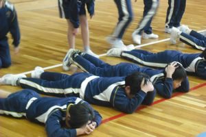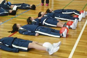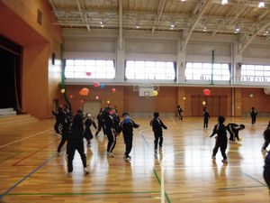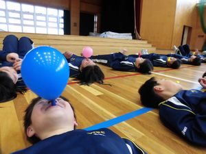 コアトレを行いました。風船を膨らませたり、風船を落とさないように足を上げたりするなど