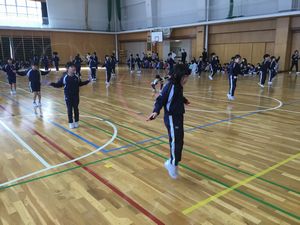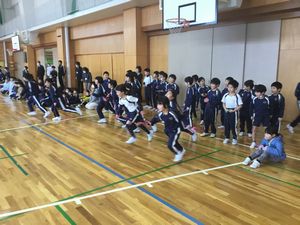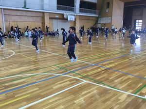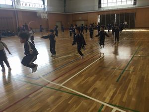 業間活動の時間に2,4,5年生のなわとび発表会がありました。2年生は、後ろとびやあやとび、二重跳びの技を披露しました。入場は、駆け足で行い、やる気満々でした。運動不足になりがちな季節ですが、縄跳びは手軽に体を動かすことができるので、今後も練習に取り組んでほしいと思います。