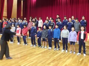 中学校の音楽の先生に来ていただき、卒業式、6年生を送る会の歌の指導をしていただきました。立ち方や声の出し方のコツを教えていただき、美しい声が出せるようになってきました。当日までさらに練習し、素敵な歌声が響くよう頑張ります。
