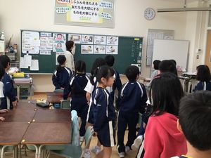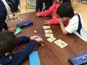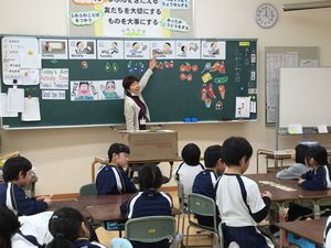 2年生最後の英語の授業は「はらぺこあおむし」でした。曜日の言い方を練習した後「THE VERY HUNGRY CATERPILLAR」を読んでもらいました。あおむしが何曜日に何を食べたのかのクイズでした。グループで話し合って答えを決めました。最後まで笑顔で英語を楽しむことができました。