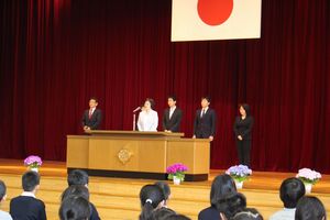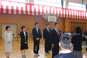 出会いと別れの春です。離任式では7人の先生方を見送り、新任式では8人の先生方をお迎えしました。一つずつ学年が上がり、やる気に満ちた顔の子供たちでした。