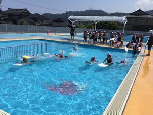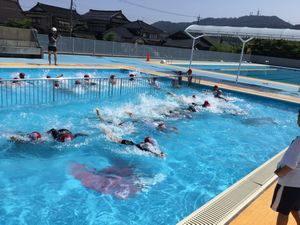 夏、真っ盛りの登校日。プール練習をしました。1学期間は、気温が上がらず、「寒い」を連発していた子供たちでしたが、今日は気温も高く、思いっきり練習することができました。
