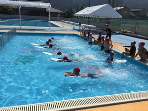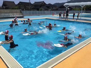 バタ足練習を繰り返し、顔を水に付けることができるようになった子供たちは、ビート板を使ってかっこよく泳げるようになってきました。暑い夏、プールで水泳練習に取り組んでもらえたらと思います。