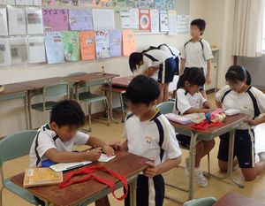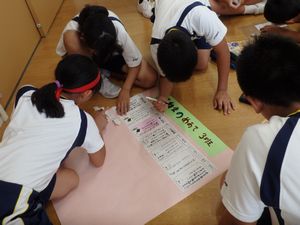 さみっこなかよし活動がありました。運動会に向けて、縦割り班でめあてを書きました。高学年が中心となって、めあてを考えて書くことができました。6年生は1~4年生をまとめ、5年生が班みんなのめあてを貼りました。高学年のリーダーシップが発揮されました!