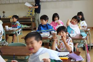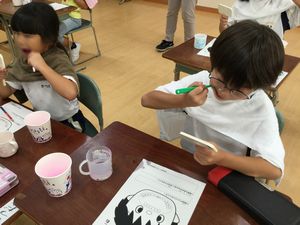 昨日の2・3限に、1年生のむし歯予防教室がありました。むし歯をどうしたら予防できるか、歯の磨き方はどのようにするとよいかを教えていただきました。子供たちは、磨き残しがどこにあるのか、染め出しを見て確認した後、歯ブラシできれいに磨きました。むし歯になりやすい食べ物、なりにくい食べ物も教わりました。今日教わったことを、今後も続けていきましょう。