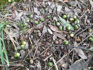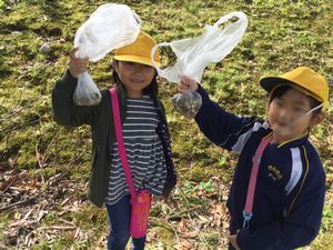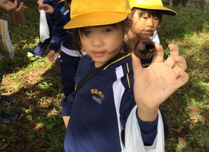 17日(木)、秋の木の実等を集めに、サンリーナと南保みず穂館へ行ってきました。サンリーナでは先週末の台風のため、辺り一面どんぐりが落ちていました。子供たちは夢中になってどんぐりを拾い集め、袋いっぱいになって満足していました。サンリーナの遊具をみんなで楽しんだ後、南保みず穂館へ移動し、トチの実や銀杏など違った木の実を集めました。