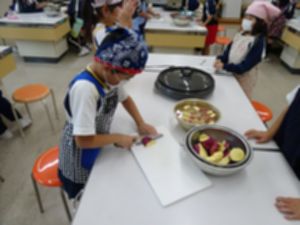 10月15日(火)、大学芋を作りました。グループで仲良く、楽しみながら調理し、みんなでおいしくいただきました。