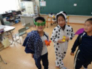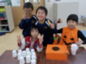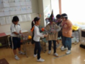 10月31日(木)にハロウィンパーティーをしました。仮装をして、グループごとに作ったおもちゃで遊びました。