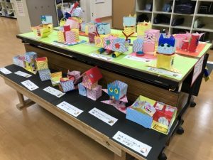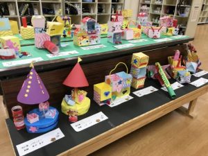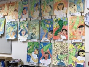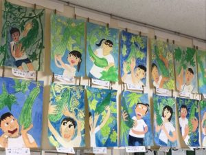 学びの秋、読書の秋、スポーツの秋、そして芸術の秋。 今、4年生ワークスペースには、子供たちの図画や工作が展示されています。 図画は、ヘチマと自分を描いた「ヘチマとぼく・わたし」、 工作は紙から箱を作り、おもしろい飾り付けをした「つくって、使って、楽しんで」です。 同じテーマや、材料を使っても、個性豊かな作品ぞろいで感心しています。 学習発表会の際は、ぜひ作品を鑑賞してください。発想豊かな子供たちの作品に笑顔がほころぶことでしょう。