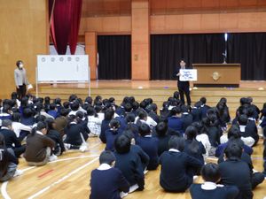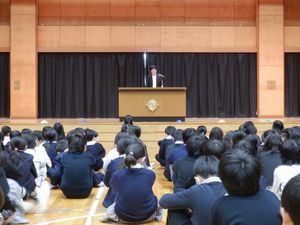 12月24日(水)に、終業式を行いました。2学期の振り返りでは、各学年の代表者が、国語科の漢字、算数科の計算、社会科の歴史、運動会や校外学習等の行事で、がんばったことや学んだことを発表しました。校長先生から「大切にしたい3つのこと(①小さな目標を立てて、自分のペースでがんばる。②チャレンジし続ける。③人を大切にする。)を振り返り、3学期よりよく成長していきましょう。冬休みは、2学期に身に付けた力を発揮して、自分で考えて進んで学習に取り組みましょう。」と話がありました。