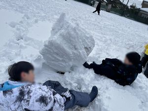 とても大きな雪だるまを作ったり、ふかふかの雪に大の字に寝転んだり、雪合戦をしたりと、
